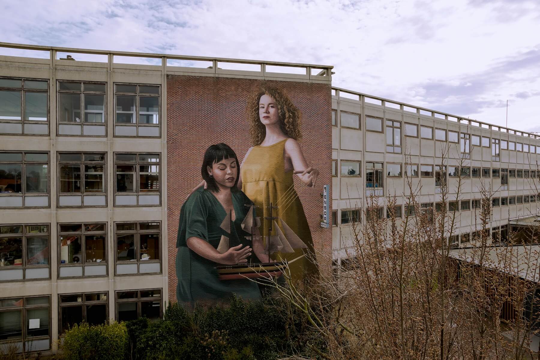 Colectivo Licuado photorealistic mural is stunning. The duo give reference to the coastal city of Ostend. The standing red haired lady on the right is the ‘Storm’, with the strength and the energy. The brown haired lady sat down is the ‘Sea’, calm and peaceful…