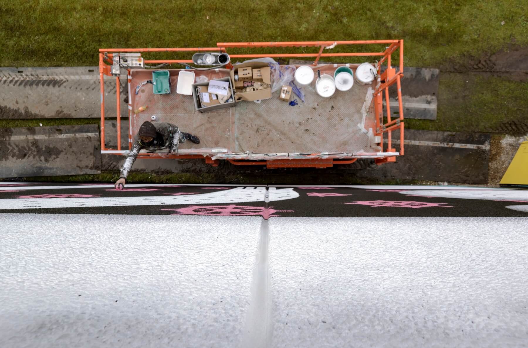 Telmo Miel embraced the few days of rain within Miel’s mural.