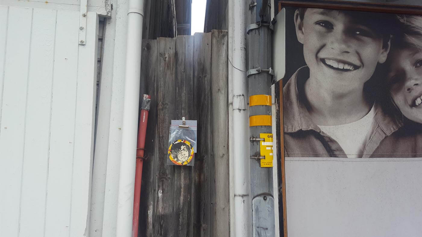 Bergen-based Nipper initiated a huge game of ‘finders keepers’ with his Mission Directives project, which creates alternative zones of communication through the installation of temporary artworks in and around city centres. Each original artwork is free to take home but contains instructions to continue the project by either performing an action in public space or making a new ‘Mission Directive’ and adding to one of the 20 bull-dog clips he has installed around Sandnes city centre.