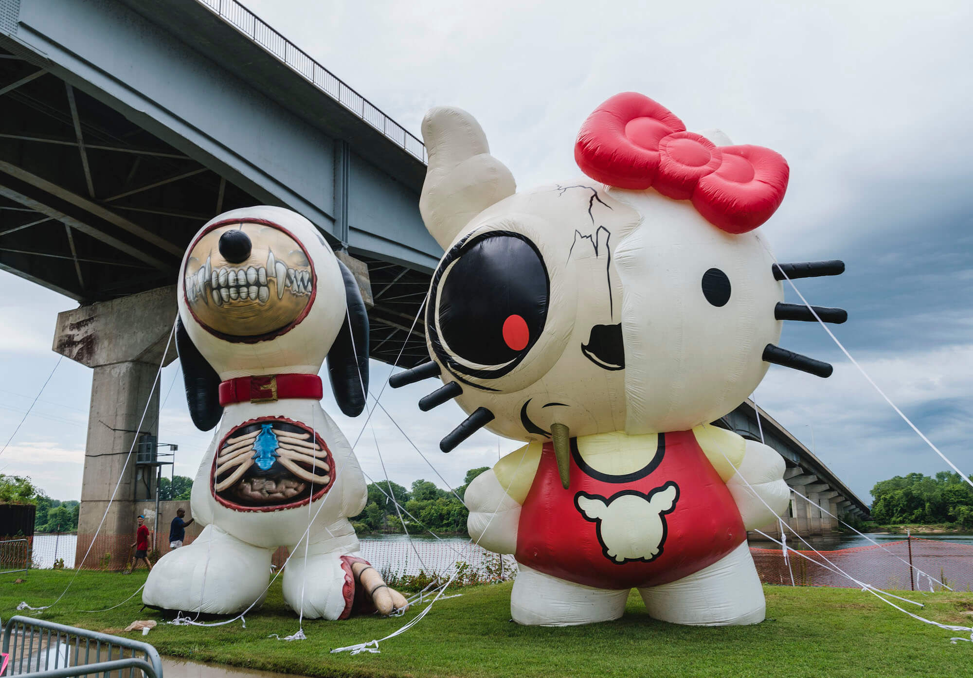 Coinciding with Peacemaker Music Festival, Justkids also inserted some eye candy within the festival grounds, popping up two D*Face’s monumental zombie inflatables, Zombie Kitty and Zombie Snoopy, floating by the Arkansas River.