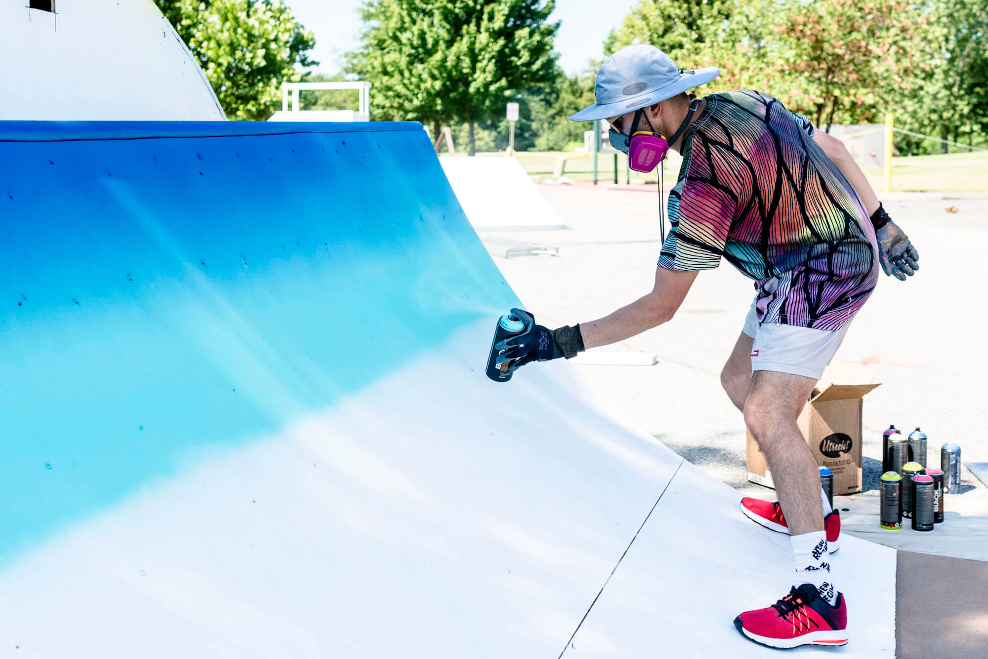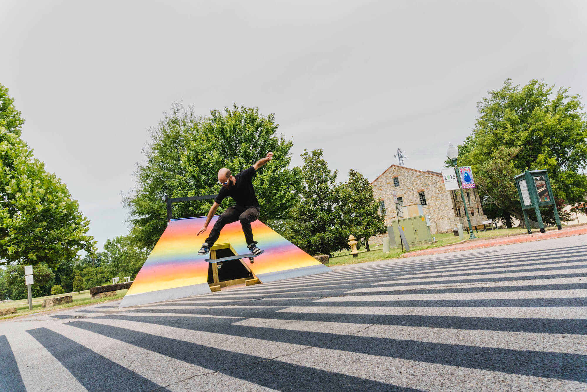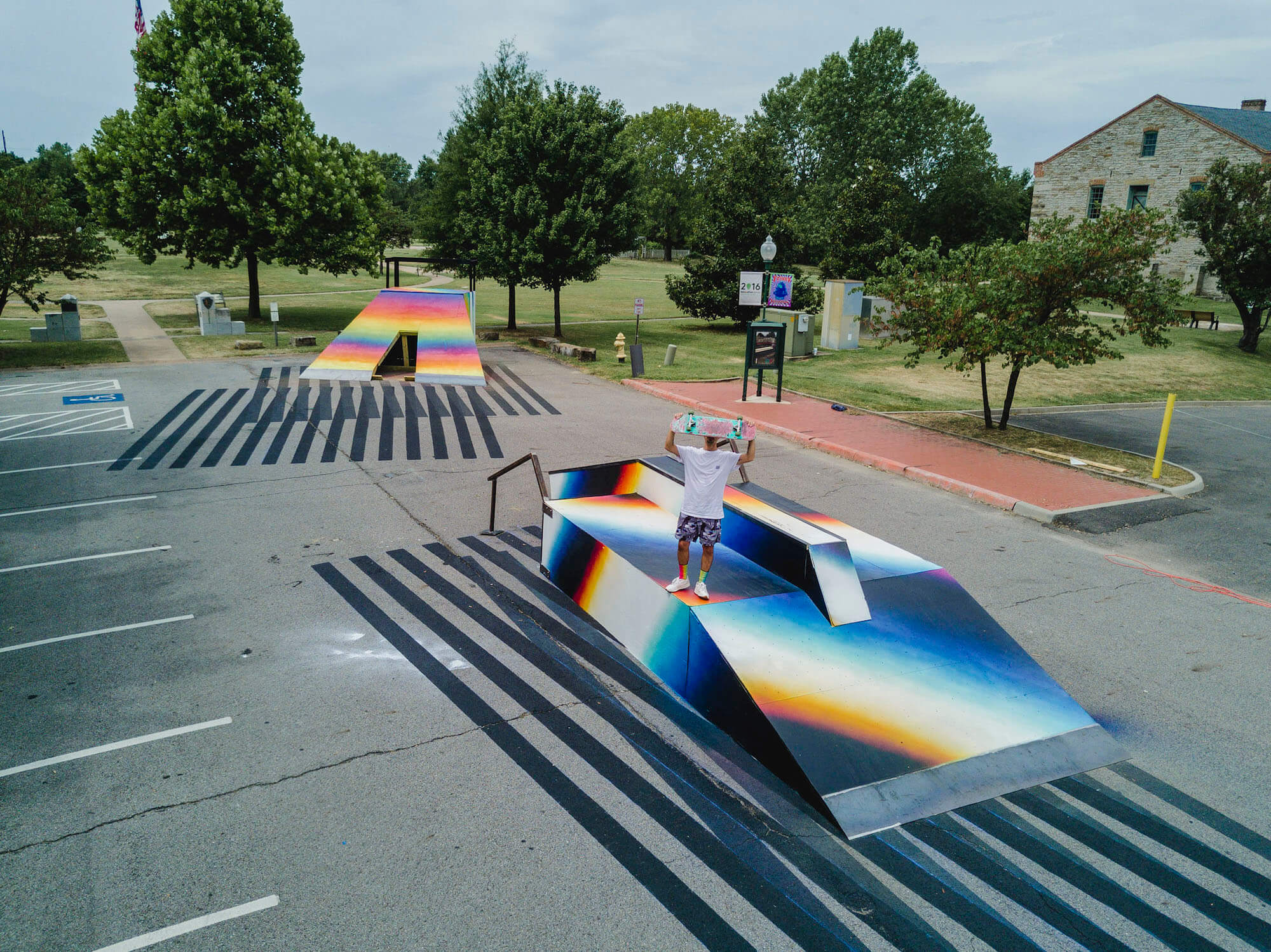 Spanish/Argentinian sensation Felipe Pantone delivered his massive free-standing sculpture “Multistabilitas”, that doubled as a “pop-up” skate park right in front of the Fort Smith National Historic Site. The iconic op-art phenomena collaborated with local riders from Boardertown Skate shop in the design and fabrication of the ephemeral ramps which are now open to the public!