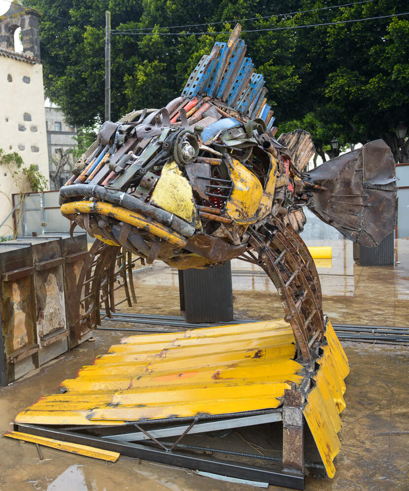 Diedel Klöver used recycled Iron and turned it into a fish sculpture. A major report declared that our oceans will contain more plastic than fish by 2050 unless the world takes radical action to stop rubbish leaking into the seas.