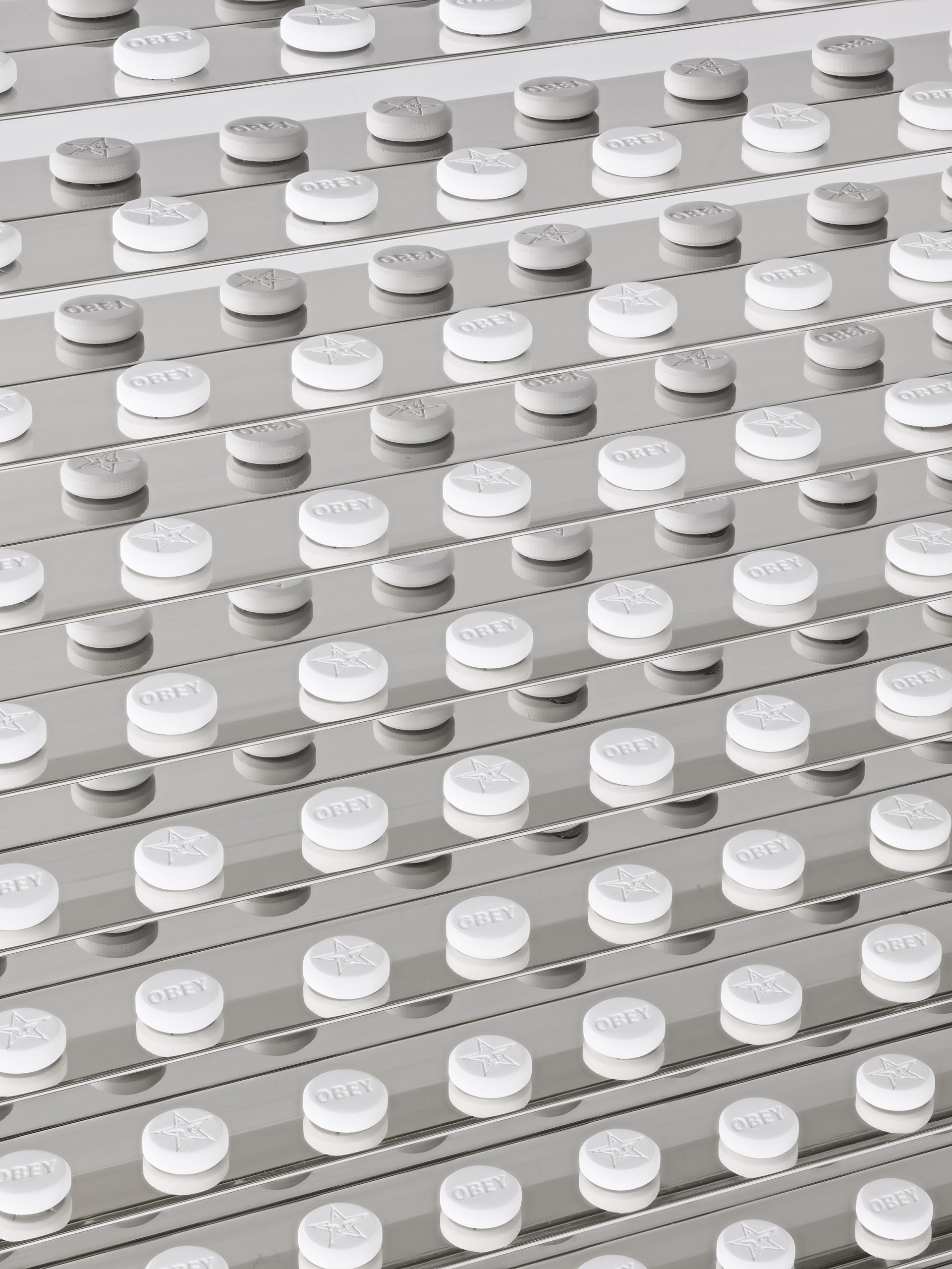 Visitors can expect collaborative Spin Paintings and Spot Artworks, merging Hirst’s hypnotic structure with Fairey’s political punch and Invader’s invasion. Rubik’s Cube mosaics, re-envisioned on an epic scale, depict cultural icons from science, music, and rebellion. Around the gallery, pill cabinets, tanks, and light boxes hum with the tension between order and disruption, between the polished and the punk.