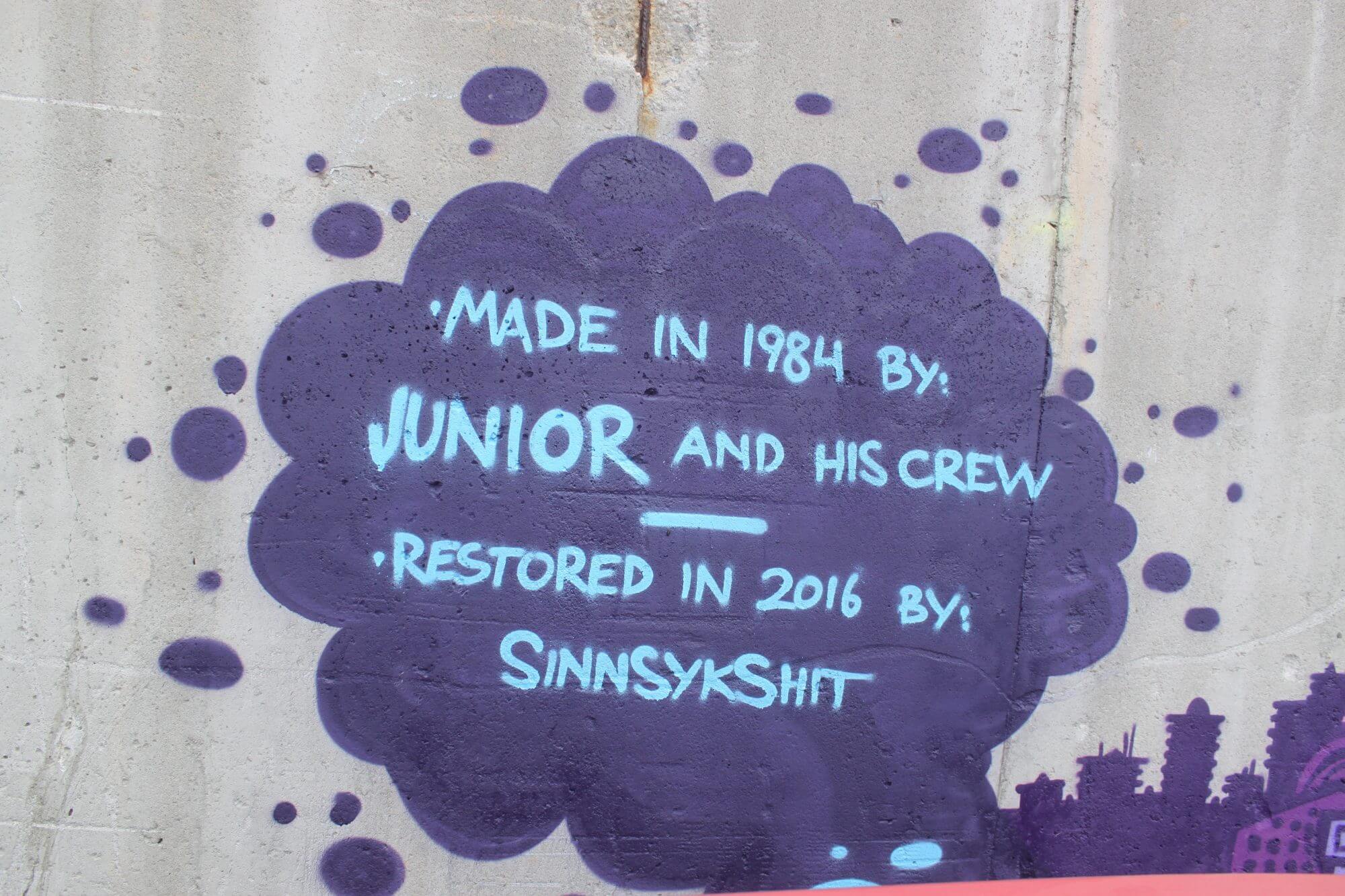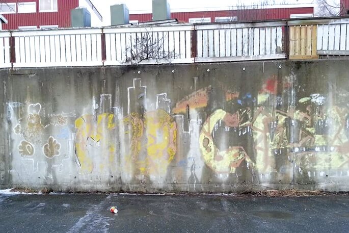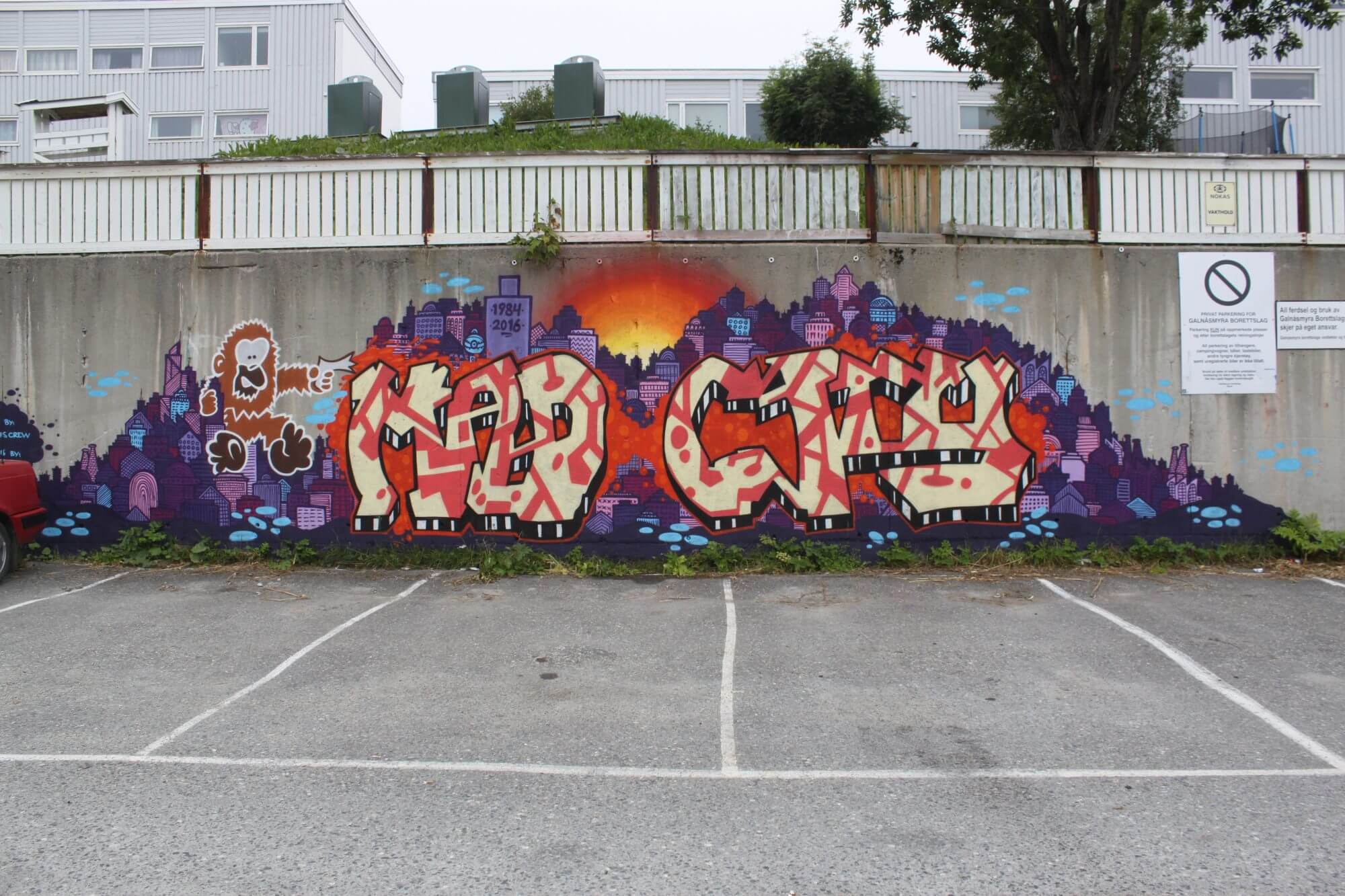 SinnsykShit was invited to Bodø to recreate an old graffiti piece from 1984. This graffiti piece is probably one of Norway’s oldest pieces painted in July/August 1984 by Junior and his crew and represents the birth of graffiti in Norway!