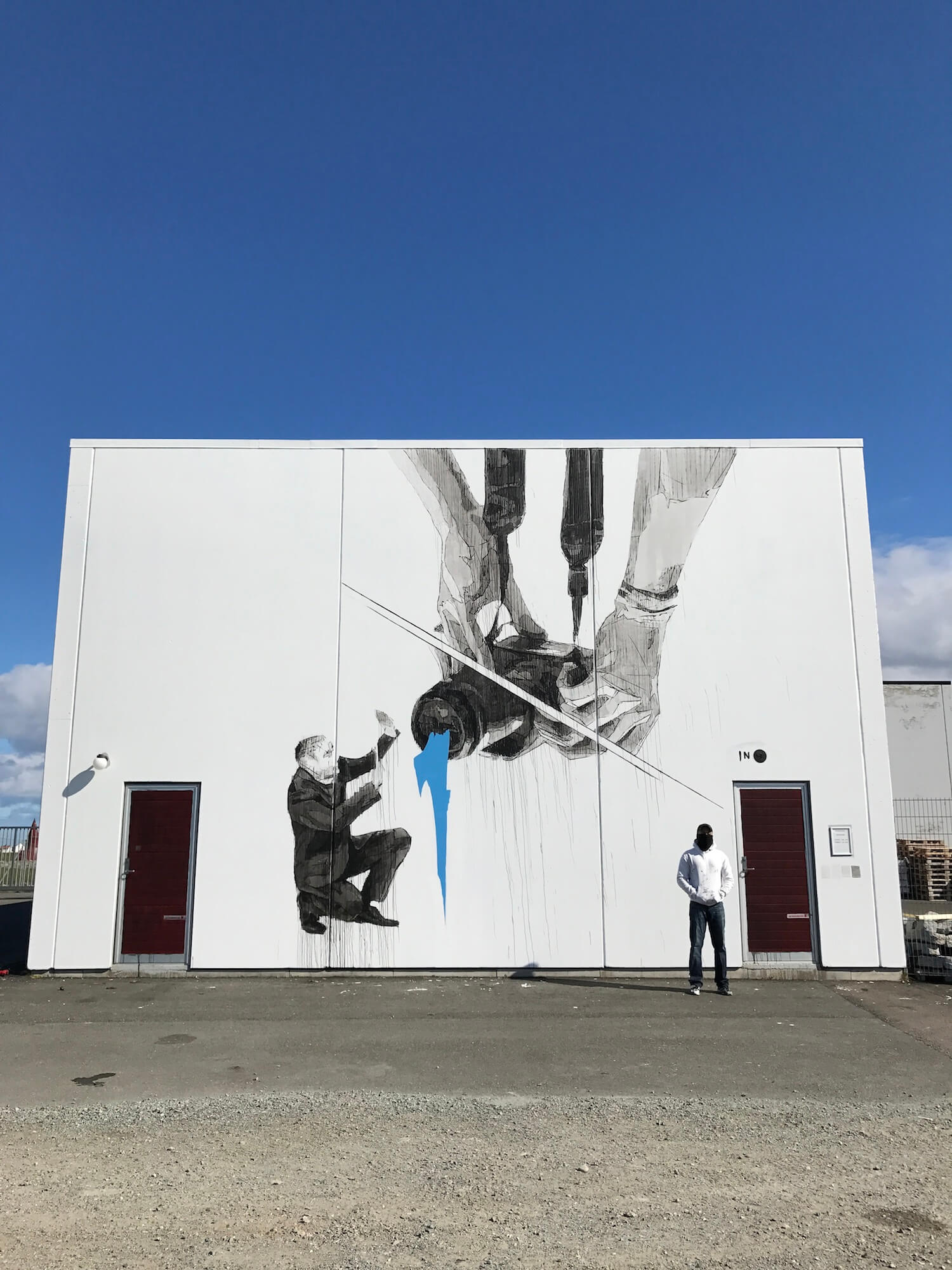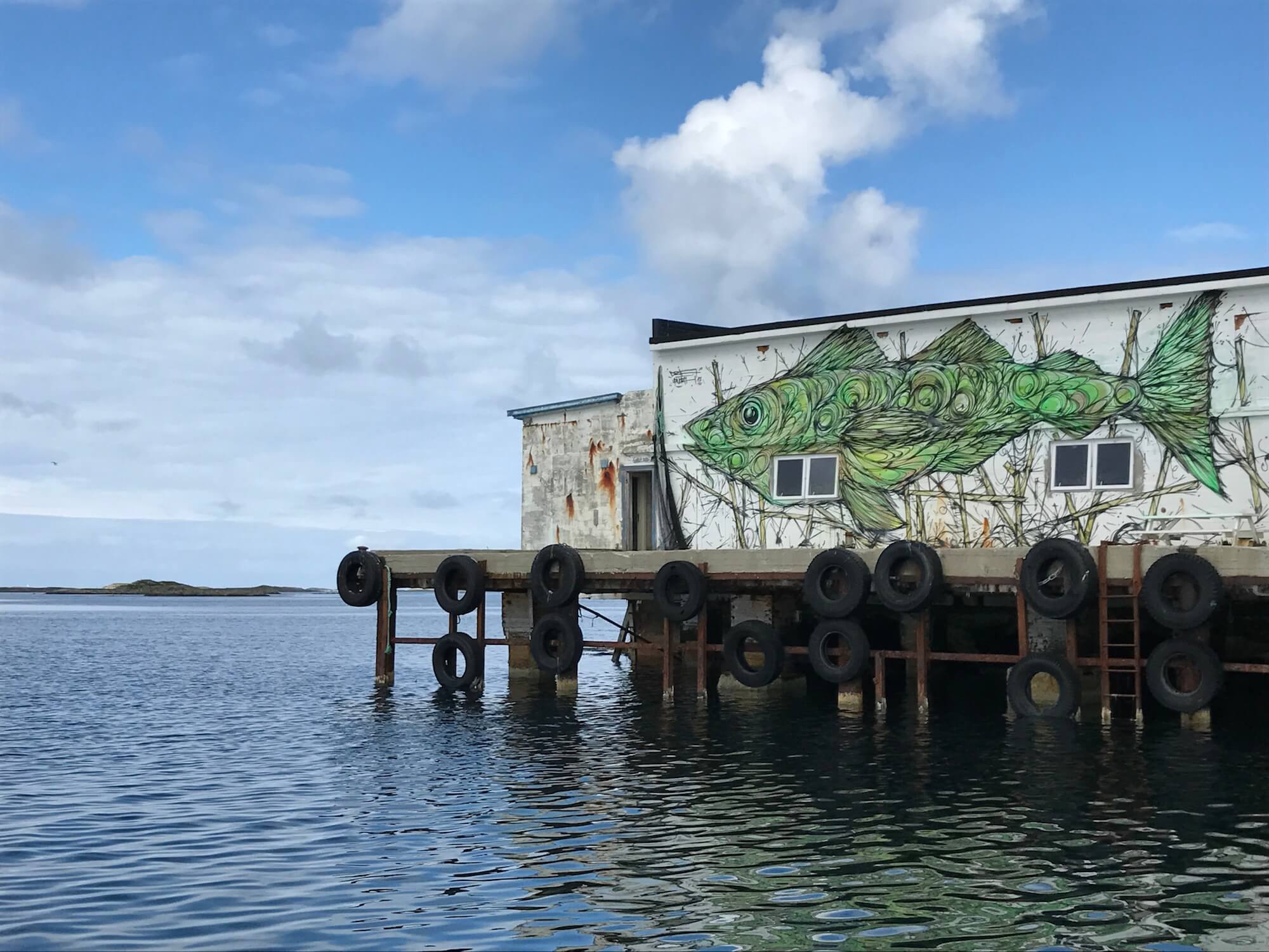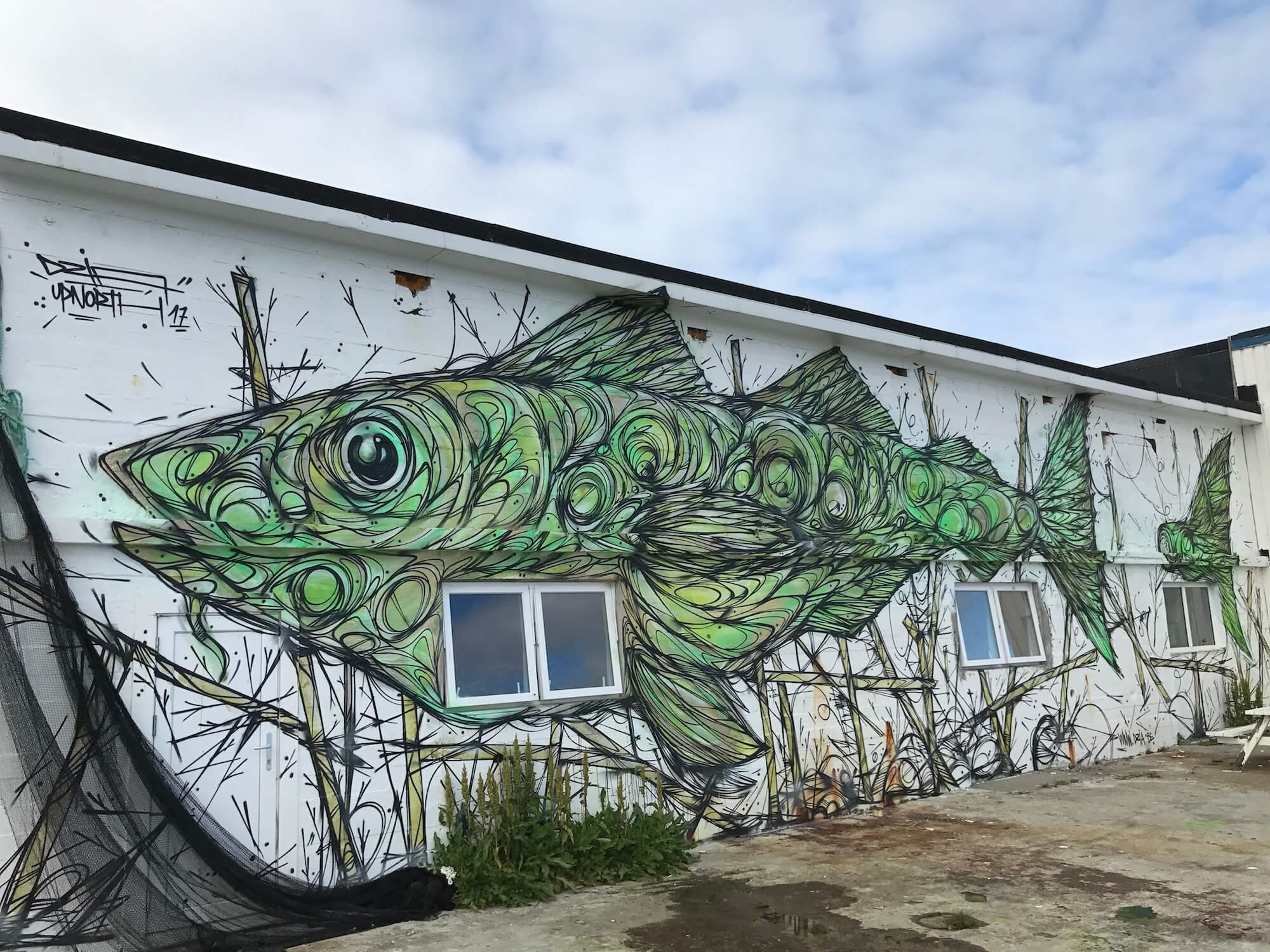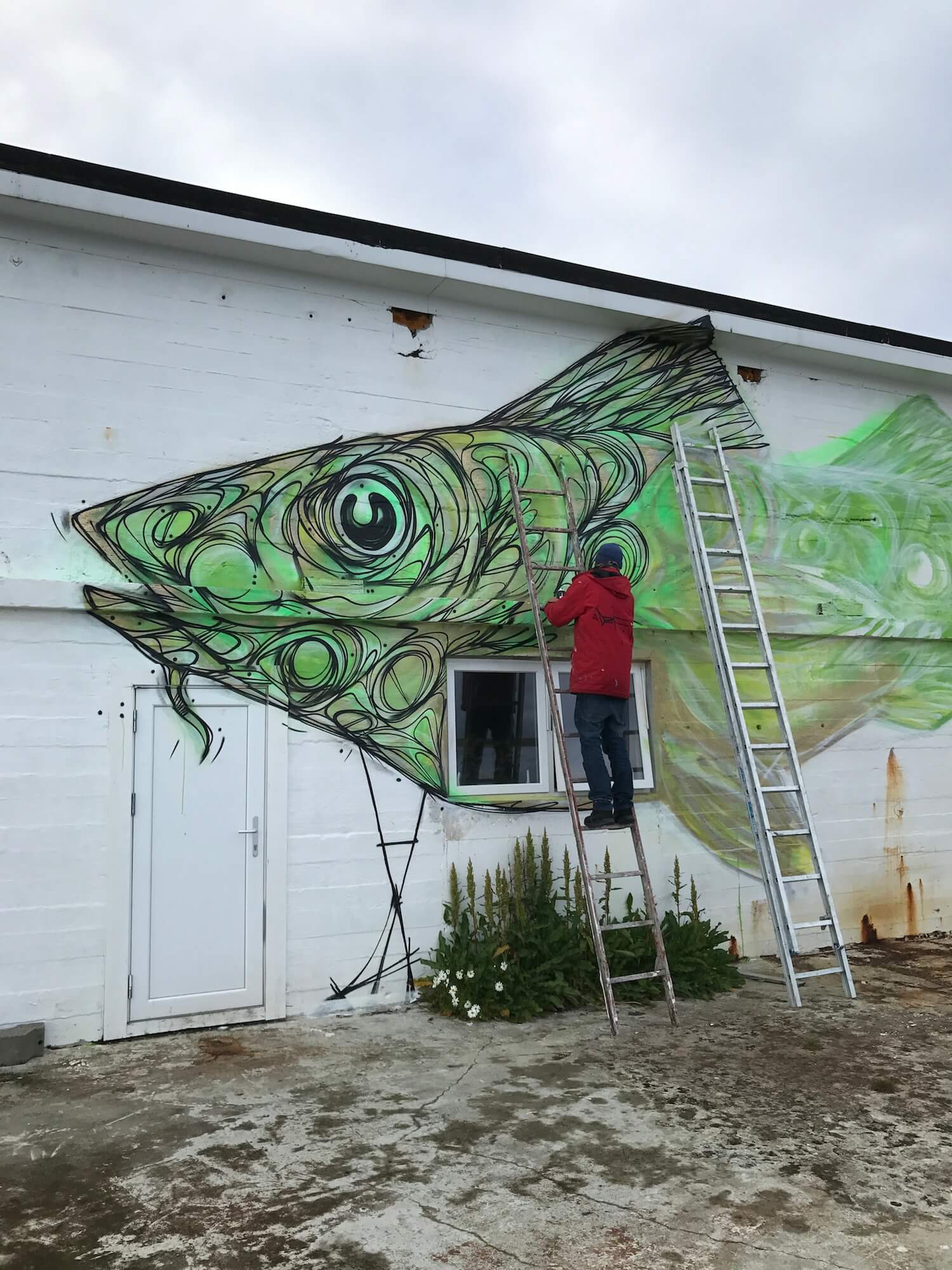 The small island produces fish and fish-related products worth more than £31 million!! Dzia based his mural on this.