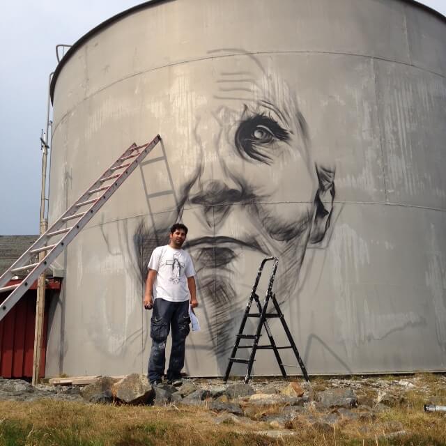 ” This is the first street art event I have been part of and to be around so many creative people inspired me to better myself and the things I leave behind on walls for others to see. My best memory of my time at Utsira has to be when me and JPS sat on high and watched the sunset into the sea. I remember us saying to each other how it was an honour to be able to paint in such a beautiful place.”