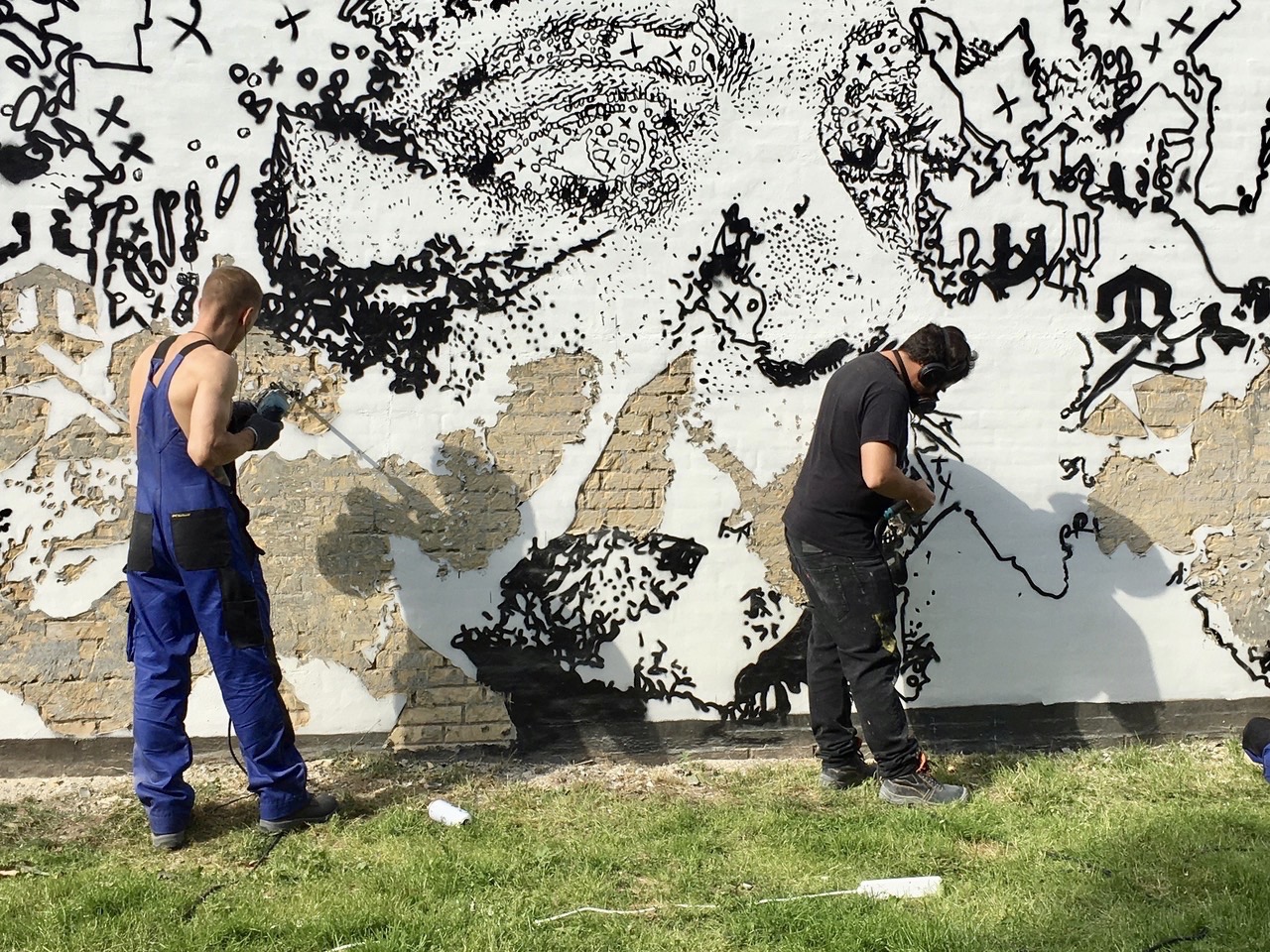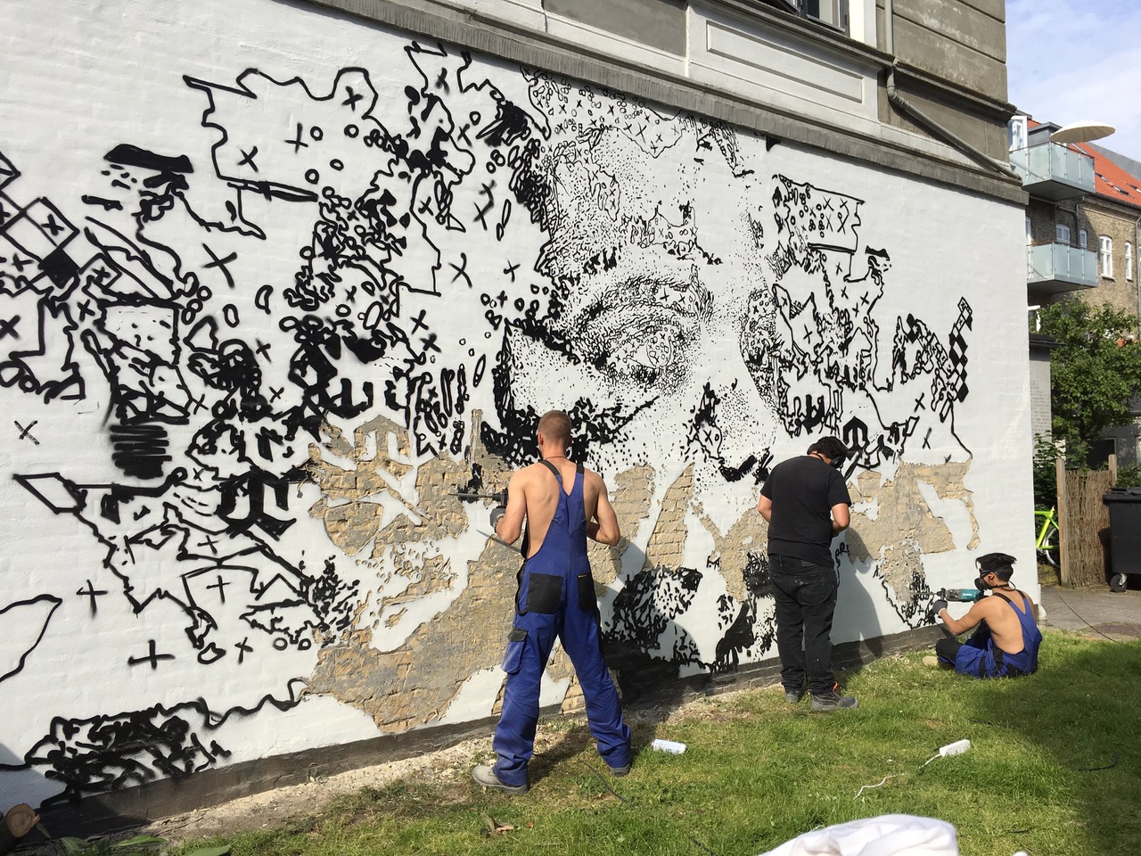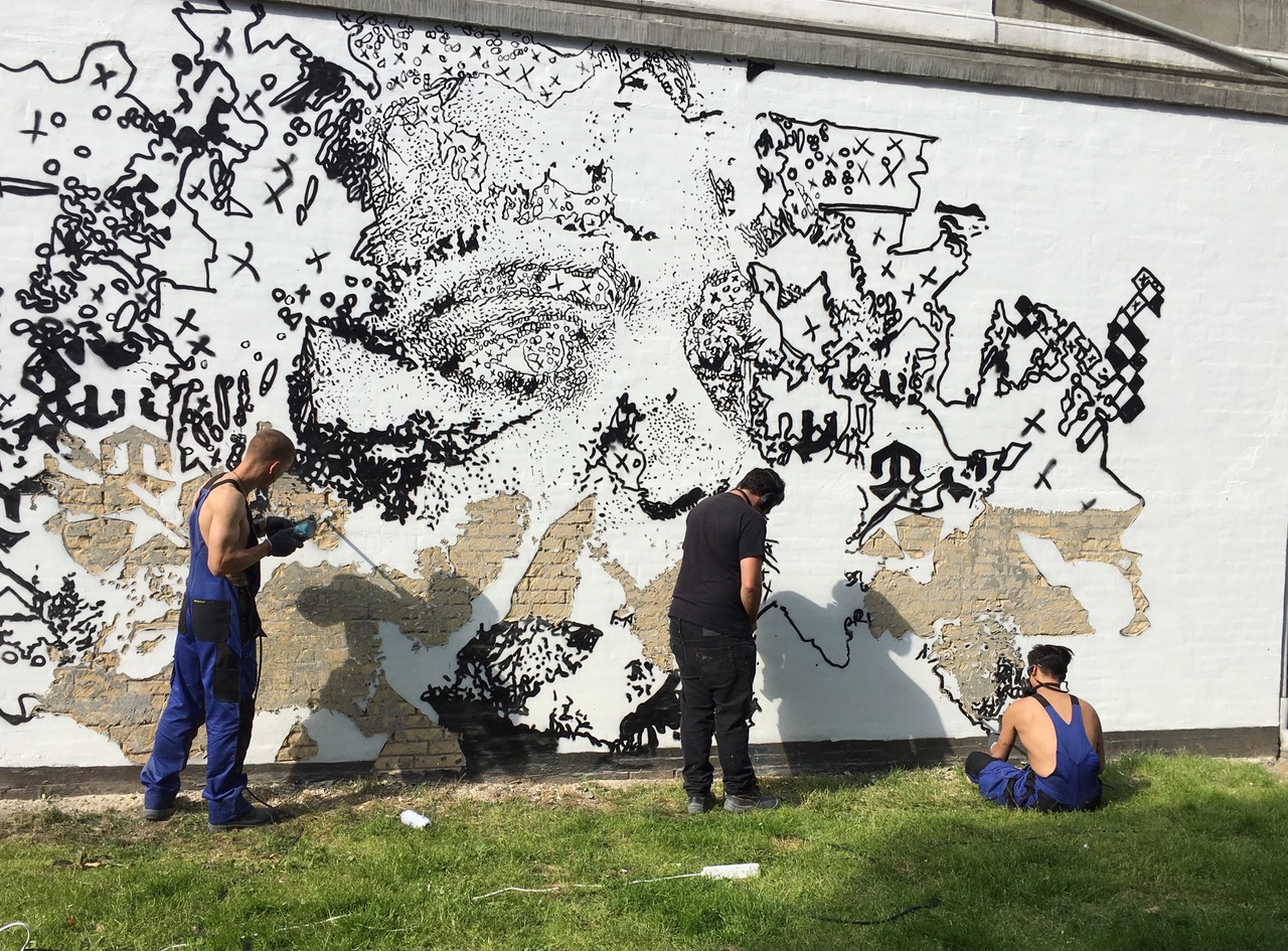 On his inaugural venture into Danish soil, the first session of the work in the mural took place during the night, allowing the citizens of Aalborg to wake up in the morning to a glimpse of what was to come.