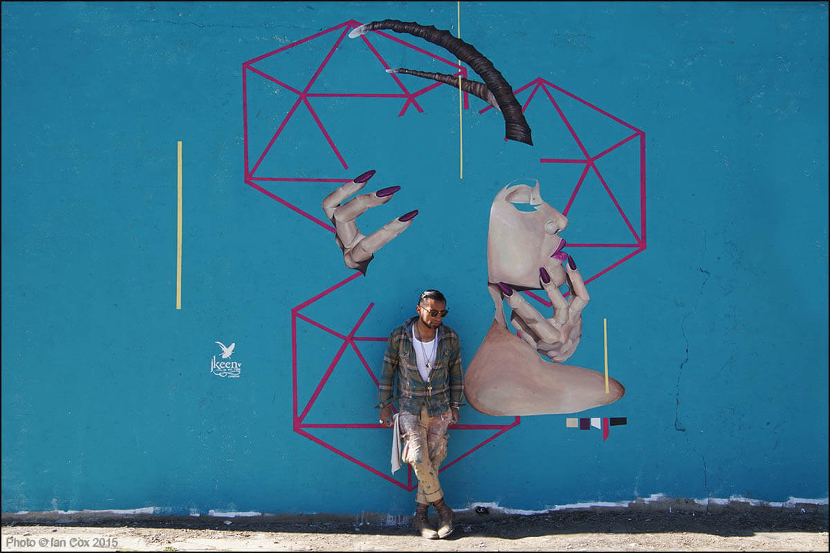 “My piece is a culmination of all the things that inspire me. I believe the space that is not occupied is just as important as the space that is. Negative spaces can create captivating shapes that are pleasing to a unknowing eye. The decision to leave the piece void of her hair and eye surrounded by the complementing geometric shapes effectively appeal to subconscious mind. The hard shapes against the organic allure of her beauty are subtlety confronting…”Joshua Keen Valencia