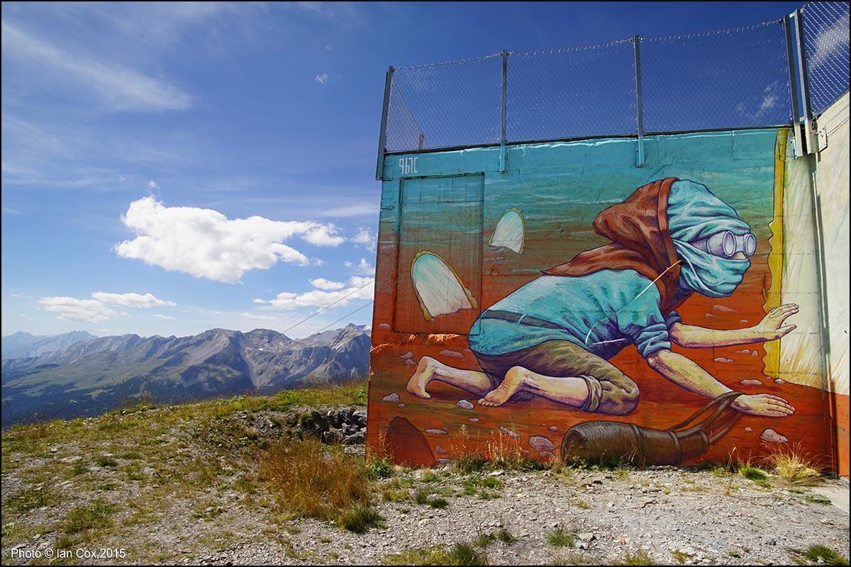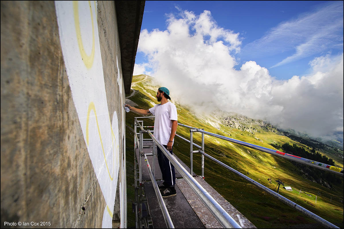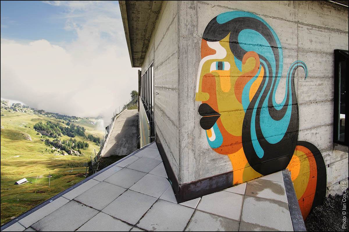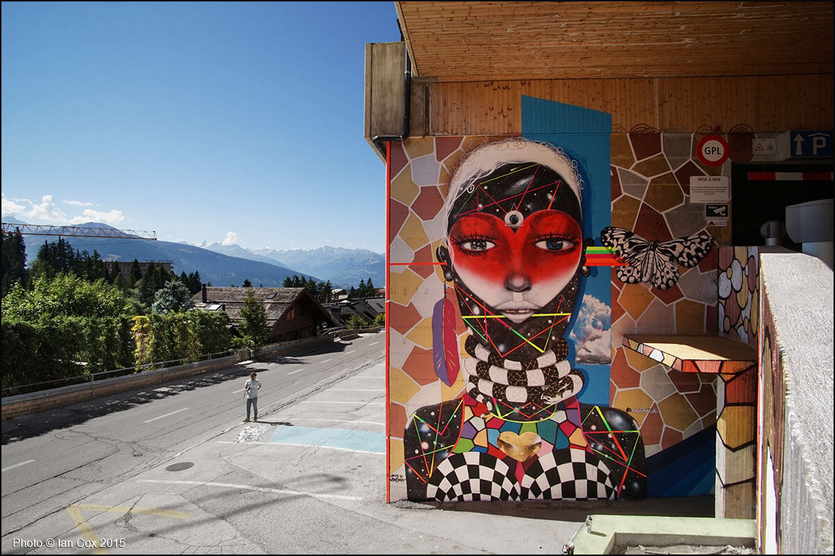 With its spectacular circular view, coiled up on a mountainous plateau overlooking the Rhone valley and the Valais Alps, the renowned Swiss resort of Crans-Montana offers an ideal platform to host the Urban art scene. The artists will be inspired by the beauty of the panorama and this incredible light which historically has inspired novelists, writers, painters, musicians back in the 18th century. Stunning photography by Documentary Photographer and Wallkandy blogger Ian Cox, specialising in documenting art in its environment.