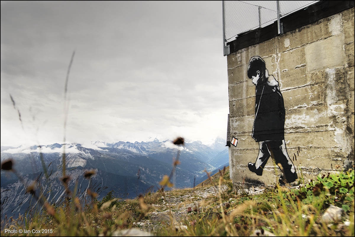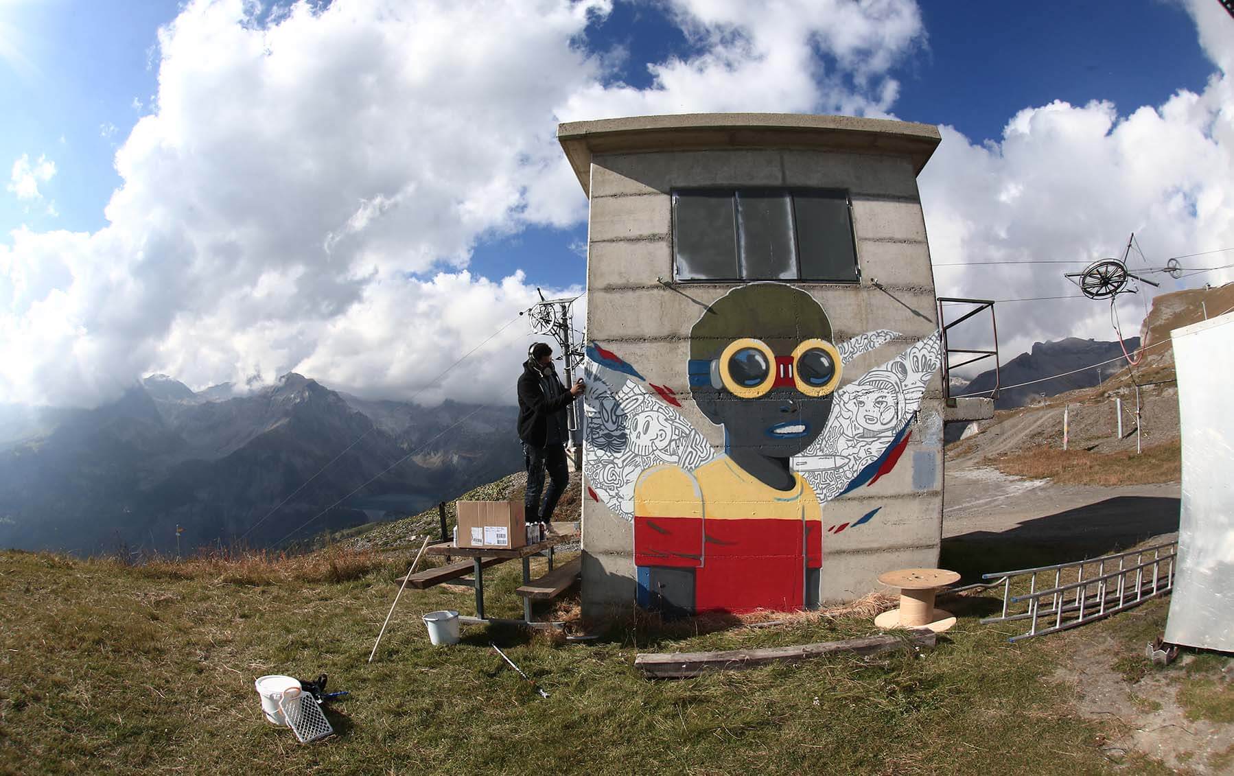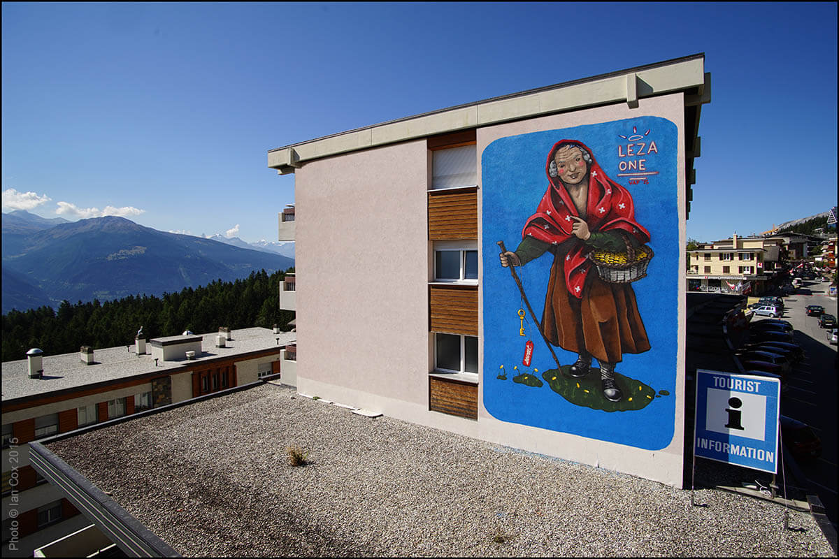 With its spectacular circular view, coiled up on a mountainous plateau overlooking the Rhone valley and the Valais Alps, the renowned Swiss resort of Crans-Montana offers an ideal platform to host the Urban art scene. The artists will be inspired by the beauty of the panorama and this incredible light which historically has inspired novelists, writers, painters, musicians back in the 18th century. Stunning photography by Documentary Photographer and Wallkandy blogger Ian Cox, specialising in documenting art in its environment.