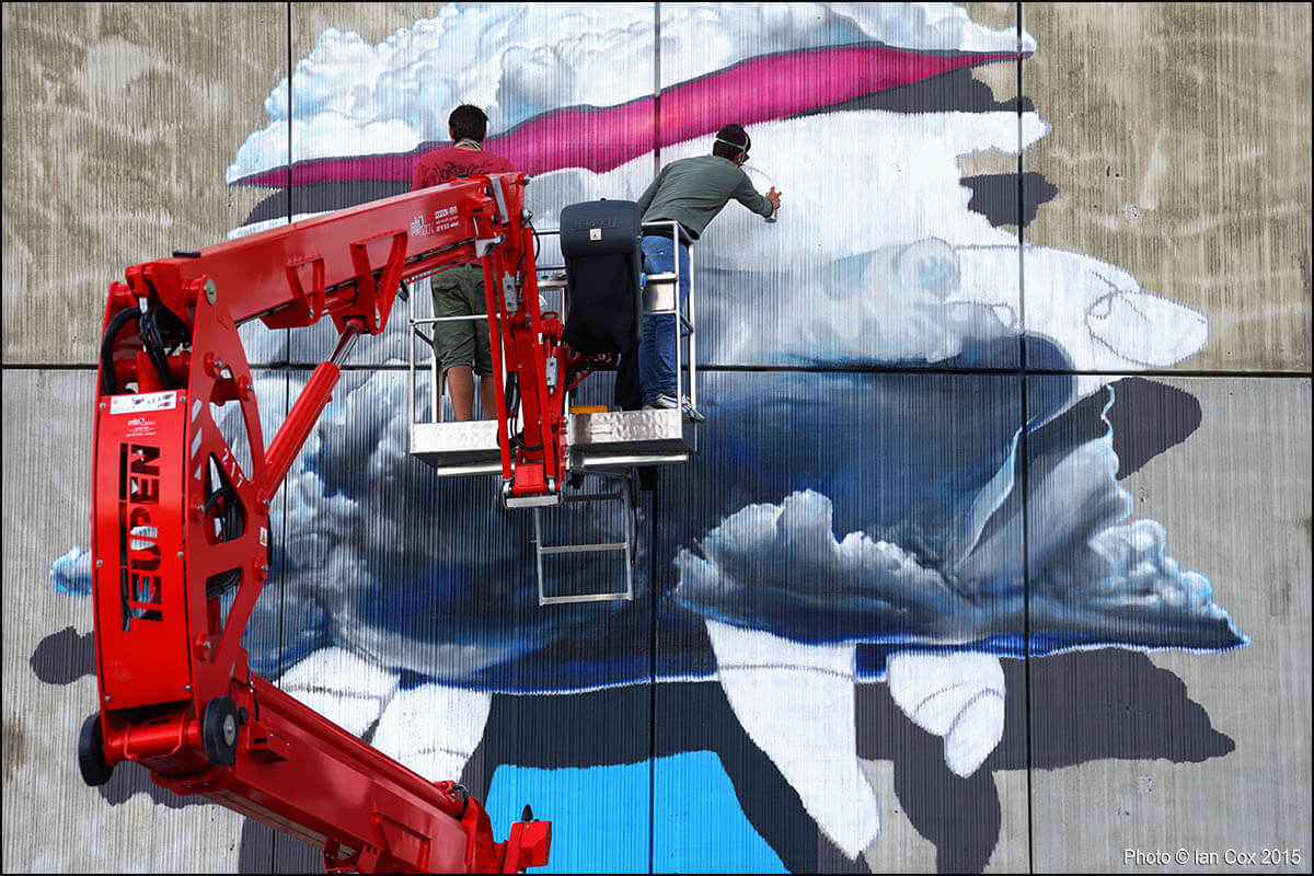 “After last year’s ‘test event’, which produced a mural by Icy & Sot and Hebru Brantley, the local community accepted the idea and the long preparations begun.” Gregory Pages