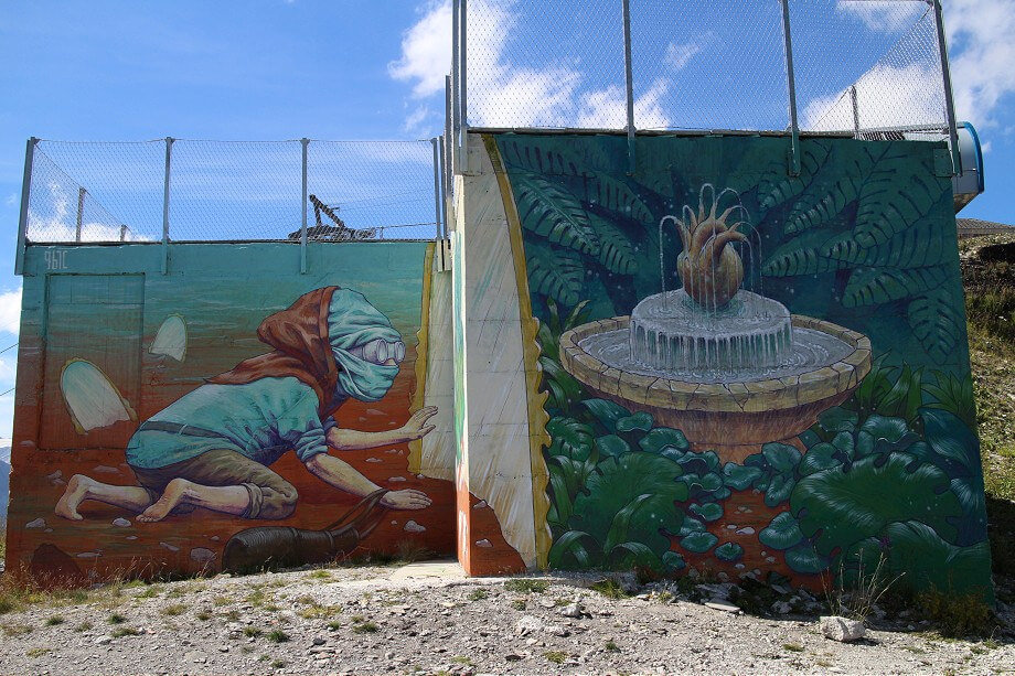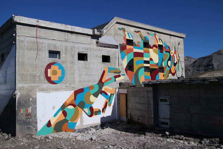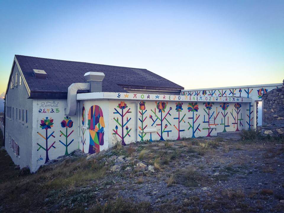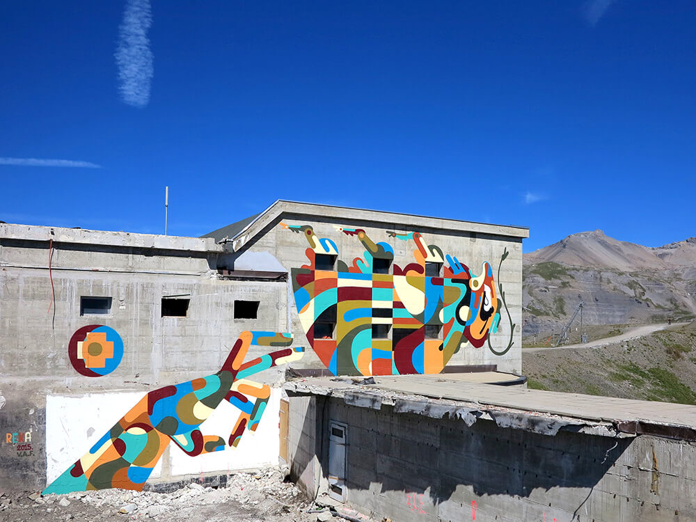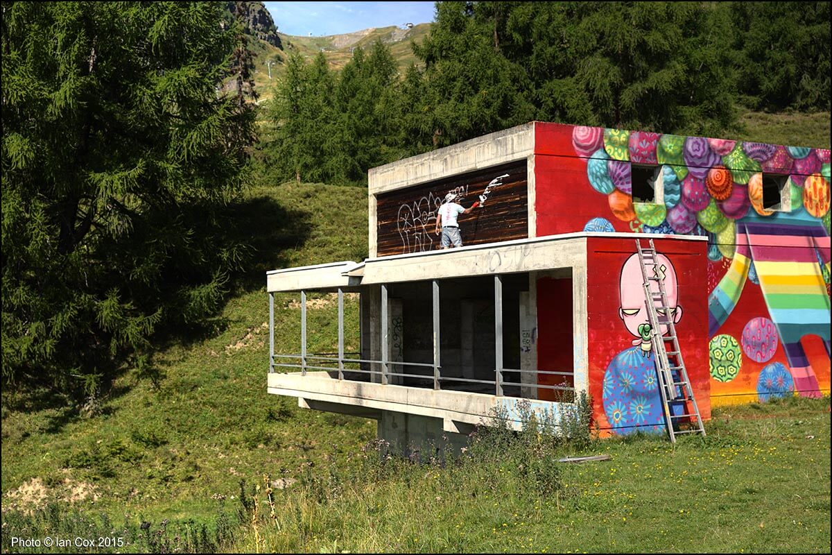 It all began with a crazy idea by Gregory Pages, founder and curator of the festival, who wanted to bring colour and art to the grey concrete ski resort… sounds perfectly sane to me! In 2014 Gregory tested his idea mixing nature and art by inviting American artist Brantley Hebru and Iranian duo Icy and Sot to paint some colour on these walls.