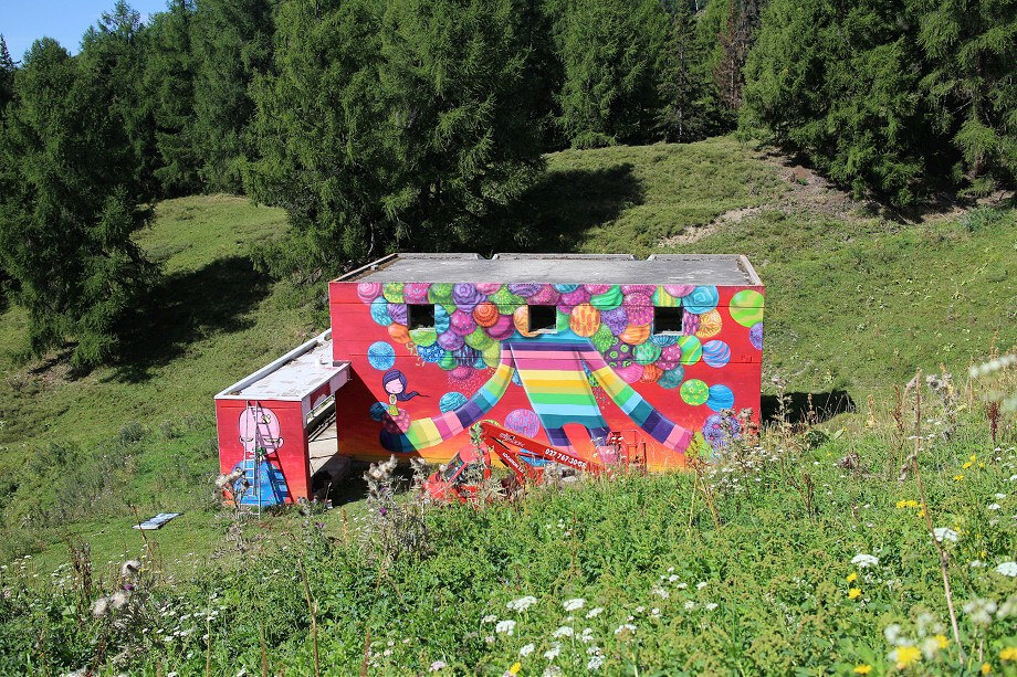 The swiss Alps are beautifully natural and mixed with Gregs crazy idea of a Street art festival, this idea defiantly works… there’s always method in the madness, and now street art in the Alps!