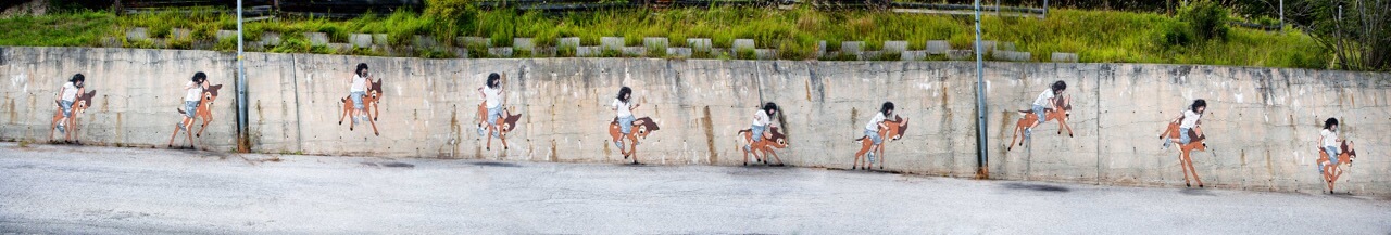 The second edition of the Vision Art Festival which took place in August, from 20 to 27, just before the mythical Omega European Masters, and artists invited were Pixel Pancho (Italy), Tones One, (Switzerland), Antonyo Marest (Spain), Marina Capdevila (Spain), Moneyless (Italy), Fanakapan (UK), Curiot (Mexico), Ernest Zacharevic (Lithuania), Twoone/Hiroyasu Tsuri (Japan), Okuda & Felipe Pantone (Spain)
