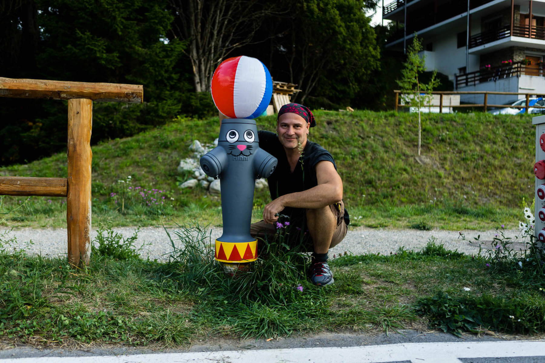 Tom Bob clevery used objects around him to transform into humorous interventions at the resort . One of them “Are You Ready To Take The Leap ?” at the cable car Crans Cry d’Er and Greg the seal.