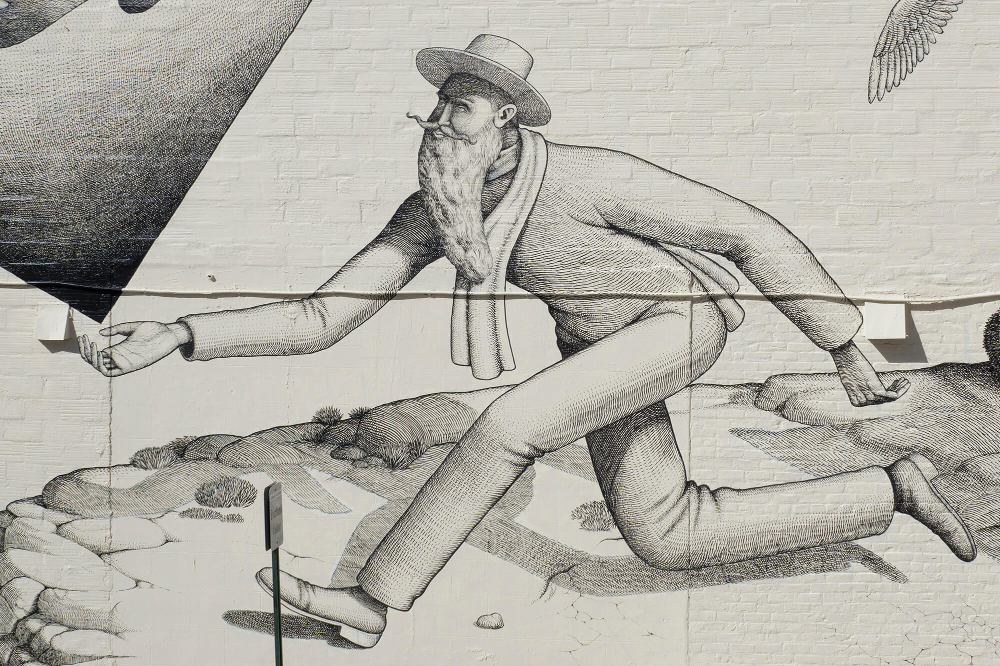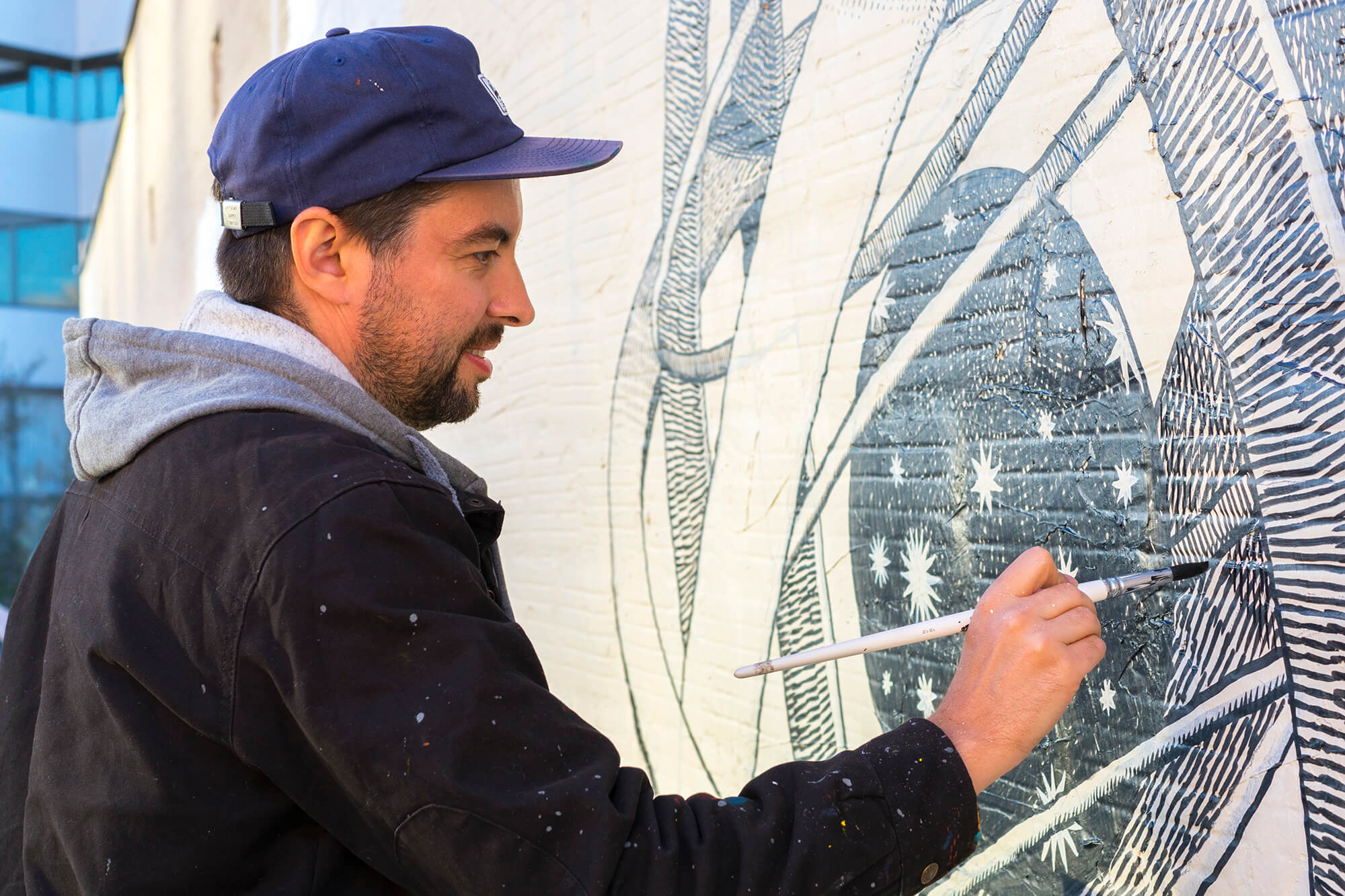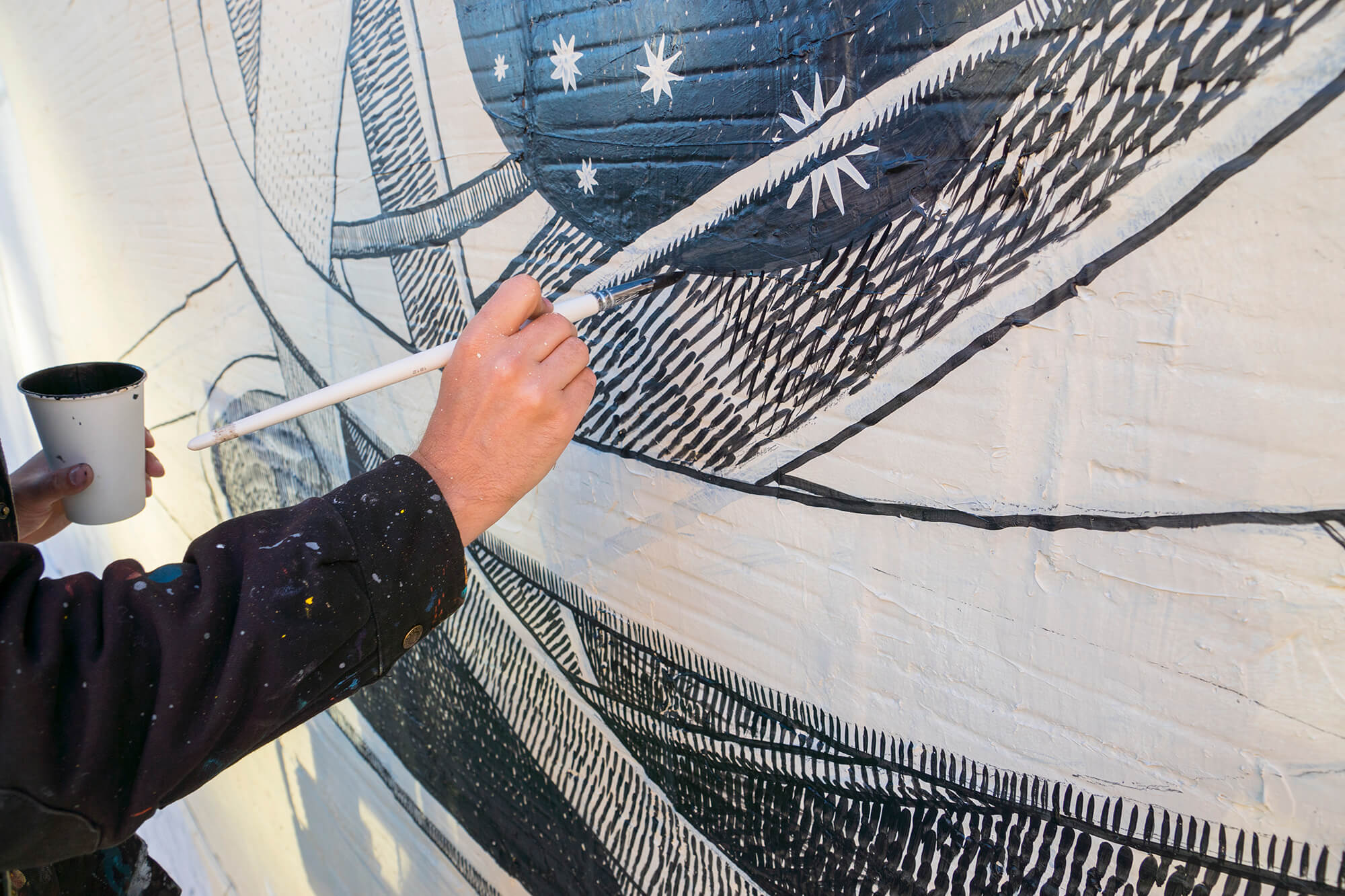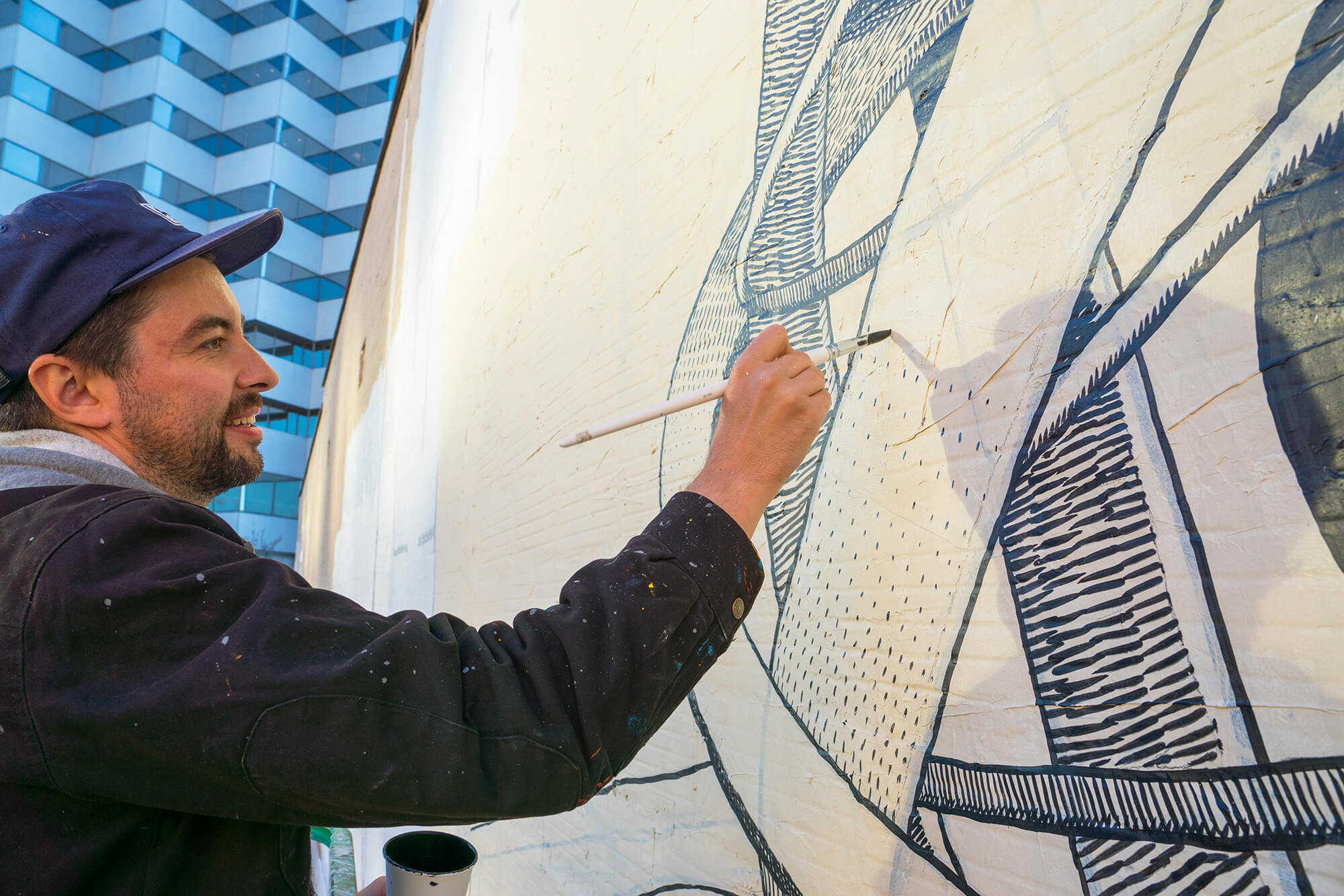 Waone’s mural aims to raise awareness to the dwindling population of North Atlantic right whales and reminds the viewer that failure to act now increases the whales vulnerability to extinction.